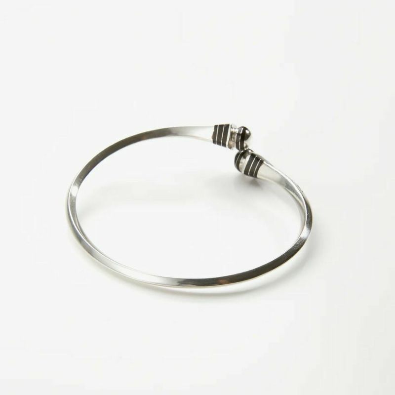 螺旋状のラインが特徴的で、ブレスレットの端には非常に堅い木材のエボニーウッドが使われています。