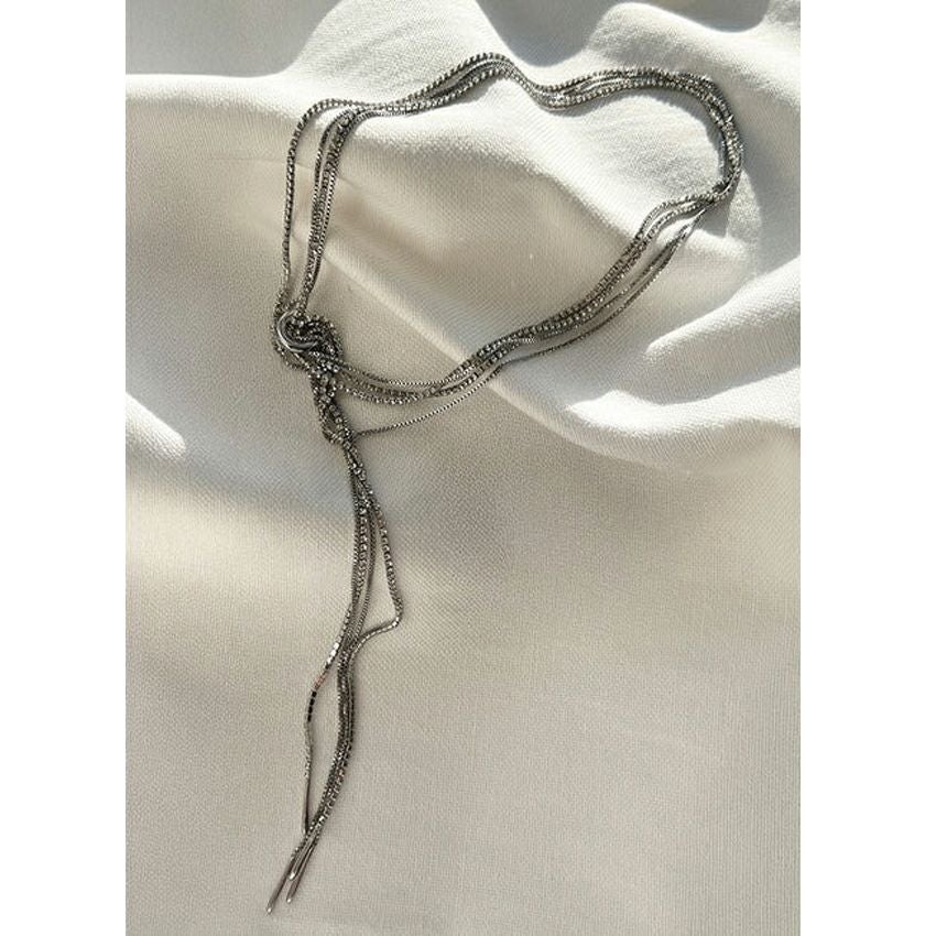 CHIGNONオリジナルデザイン。キラキラした連爪ストーンチェーンとボックスチェーンは様々な着け方ができるマルチWAYネックレスになっております。