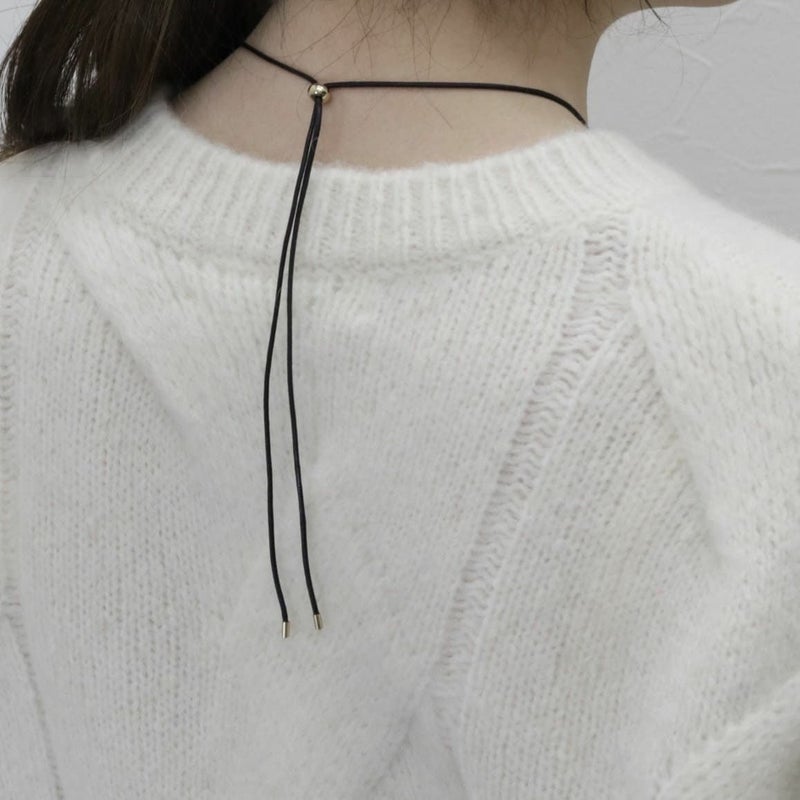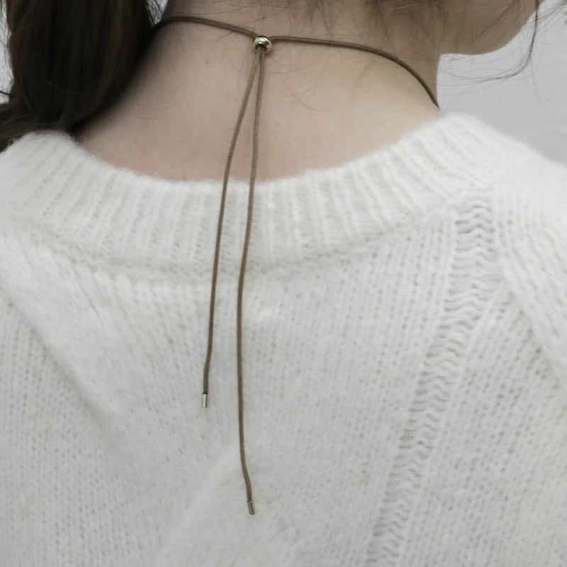 革紐に見立てたコードには、アジャスターがついており引っ張るだけで長さを調節していただけます。