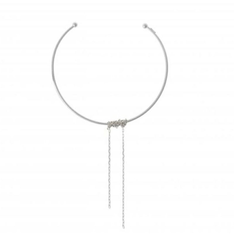 滑らかな円錐チョーカーにキレのあるチェーンが巻き付けてあるためデザイン性の高いアイテムになっています。