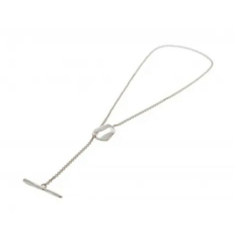 穴に通すだけで簡単に着脱できる、ストレスフリーなネックレス。