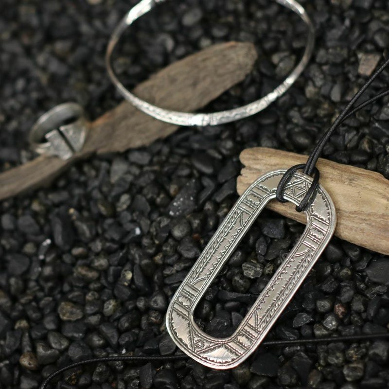 Adawat'n Tuareg/アダワット トゥアレグらしい丸みのあるシルエットと全体に彫られた文様が美しく存在感のあるネックレスになります。