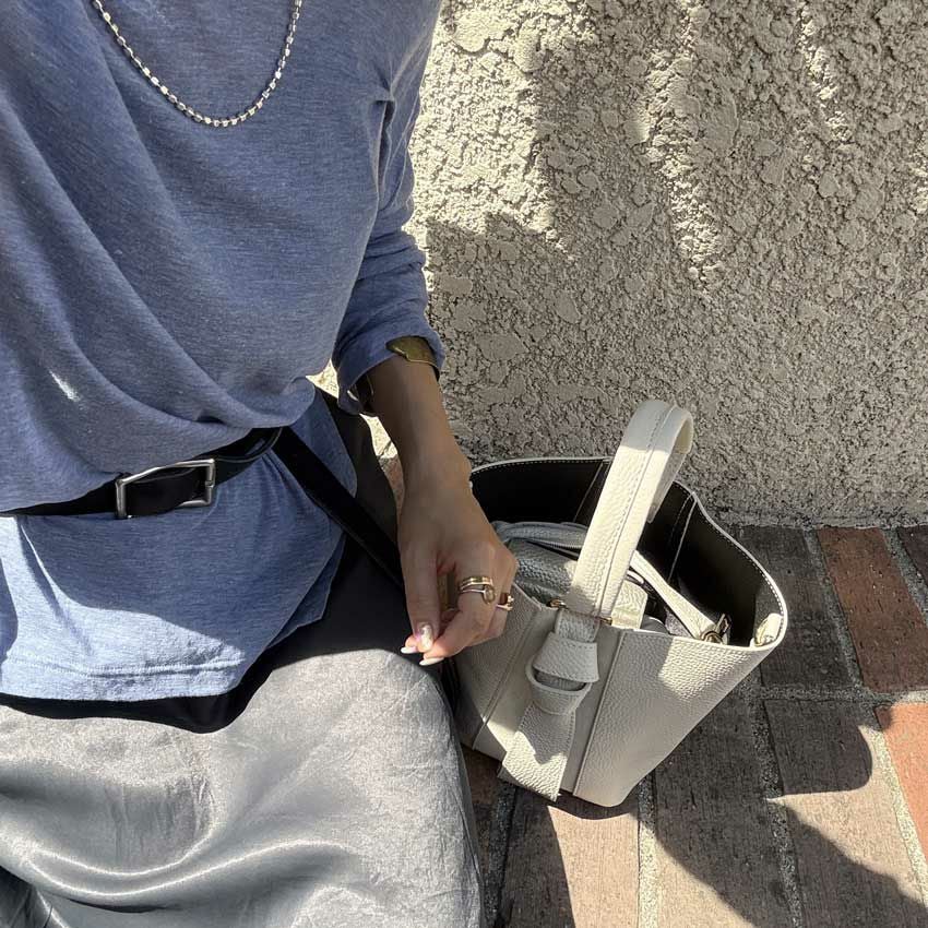 他の画像を見る AULENTTI/オウレンティ 2way ショルダー トートバッグ MBB-7910MINI 金具ベルト 牛革 カウレザー LIVE紹介商品 ¥ 24,200 税込 お気に入りに登録する