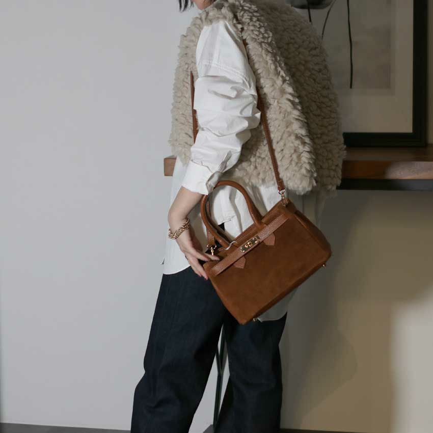 他の画像を見る AULENTTI/オウレンティ スウェードベルトBAG AW25-219-SCA-DO スエード 本革 レザー キャメル ハンドバッグ ¥ 24,200 税込 在庫切れ お気に入りに登録する