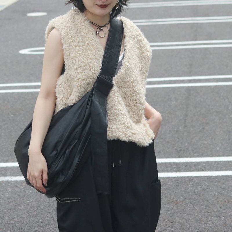 マチ付きでA4サイズも収容可能なサイズ感と、太めのショルダーとのバランスが絶妙なアイテム。