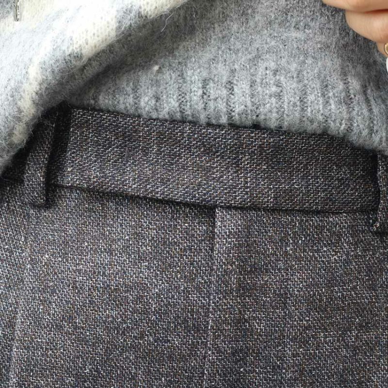 秋冬にぴったりの上品なツイード素材を使用したタックテーパードパンツ。