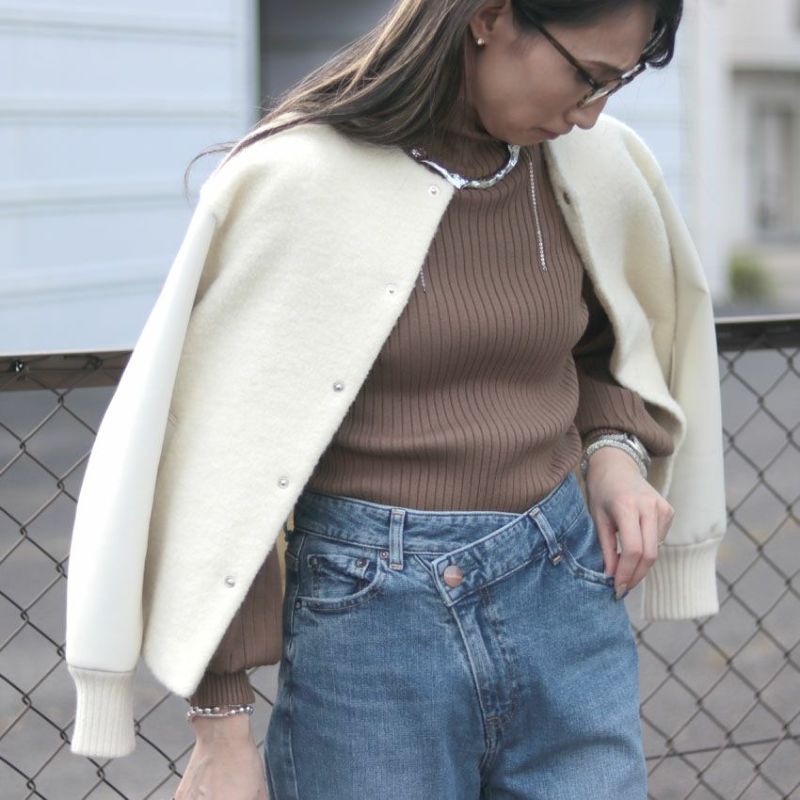 また、フロントジップにデザインがありながらも腰回りは綺麗にフィットするようこだわったシルエット。