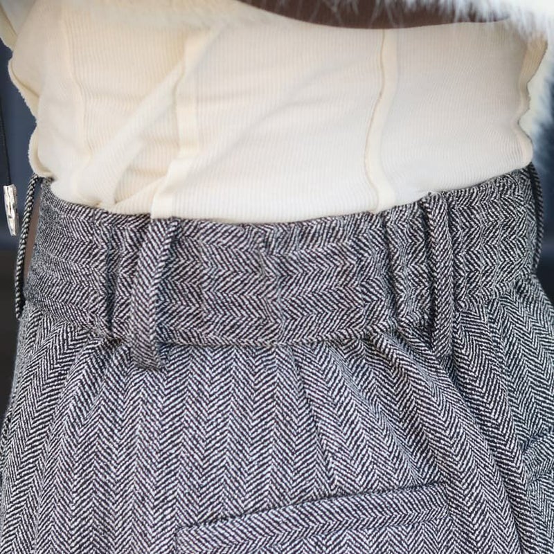 ウエストの後ろ部分にゴムを施すことで、ストレスフリーな穿き心地ながらも、フロントはスッキリと見える上品な仕上がりに。