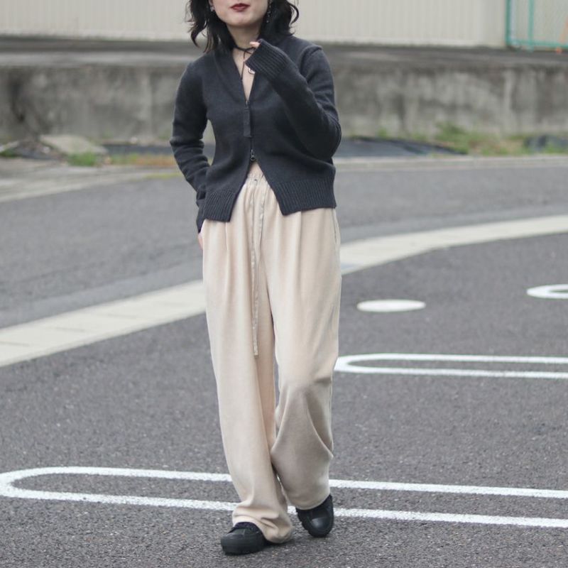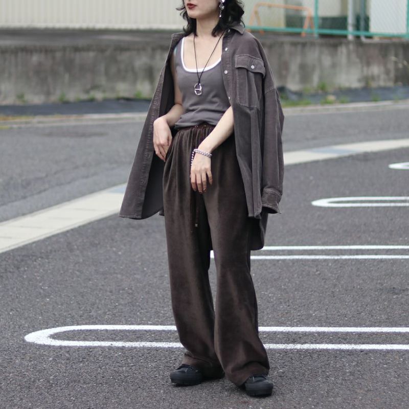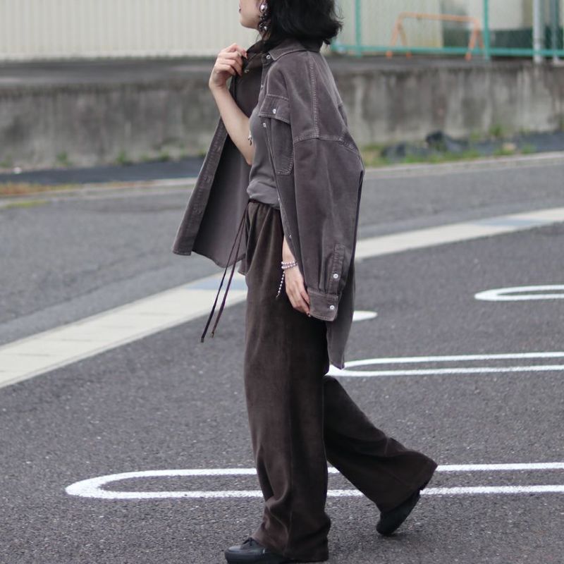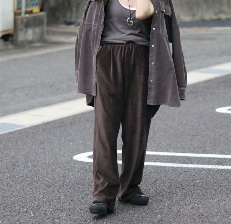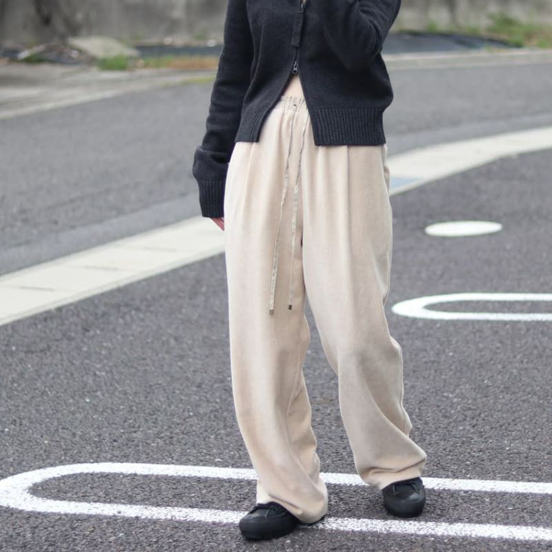 起毛コール素材を使用した、秋冬にぴったりのイージーパンツ。