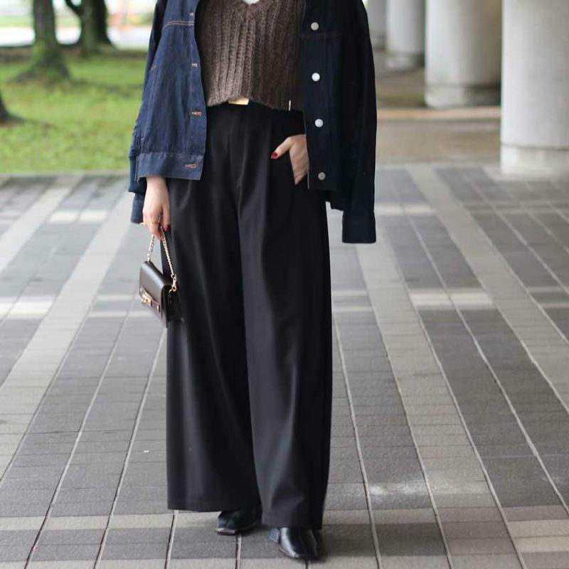 オフィスから休日のお出かけまで幅広く活躍する、ワードローブに加えておきたい万能パンツです。