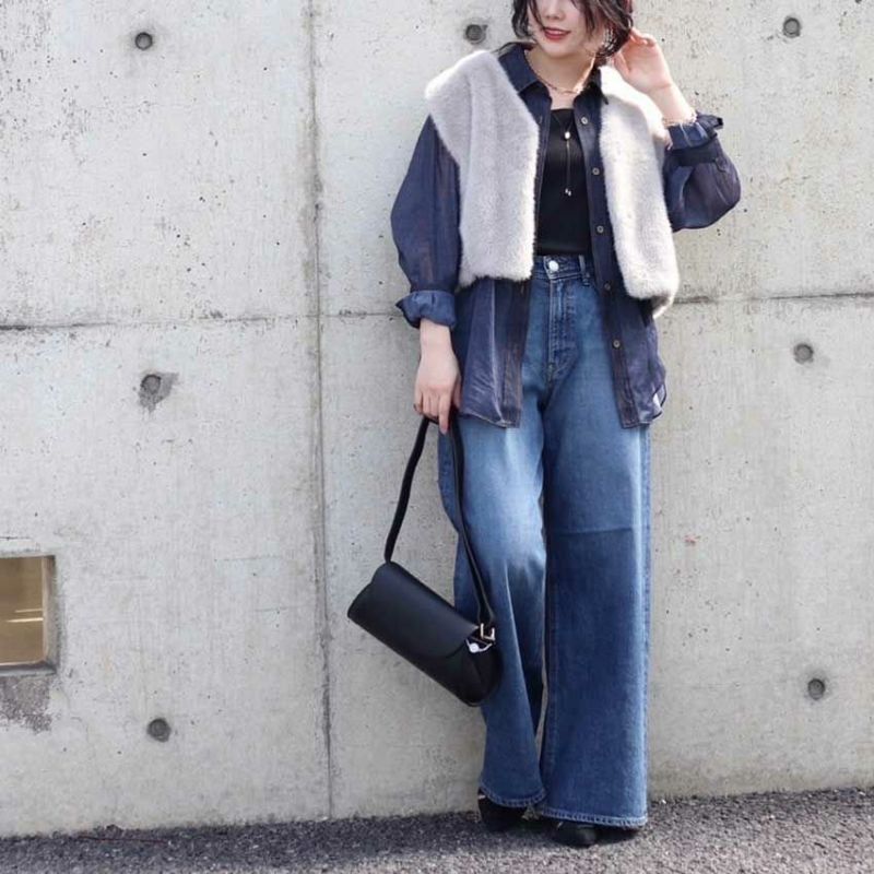 ウエストはあえてローライズに設定し、たっぷりしたボリュームの中に抜け感をプラス。