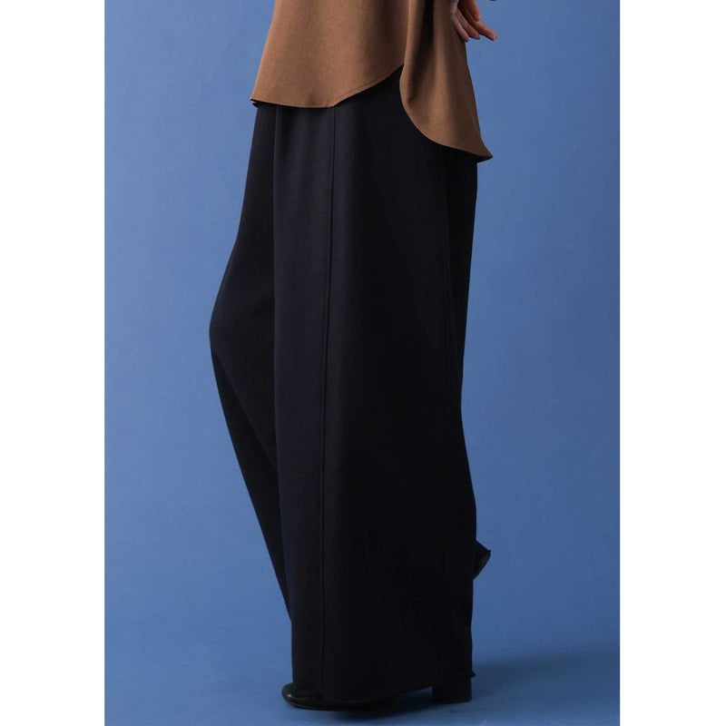 腰まわりはすっきりと仕上げ、裾に向かってゆるやかに広がるワイドシルエットがポイント。