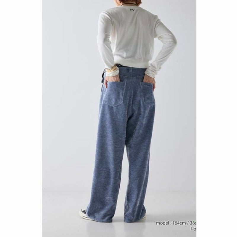 全体的にゆとりのあるオーバーシルエットながら、ウエストはハイライズ仕様。タックを寄せて程よく絞ることで、おなかまわりに締めつけ感がなく、リラックスして着用できます。