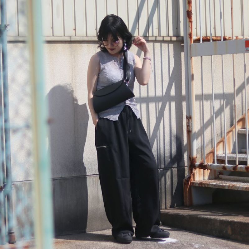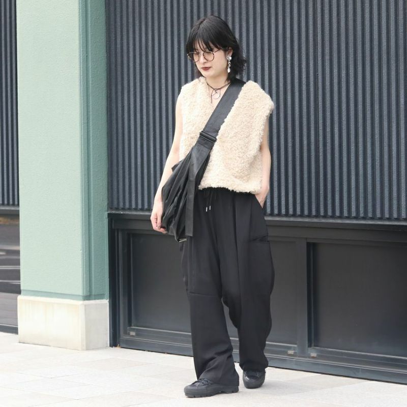 Hella/ヘラ drawstring gloss pants h253-32 ドローストリンググロスパンツ ブラック アイボリー