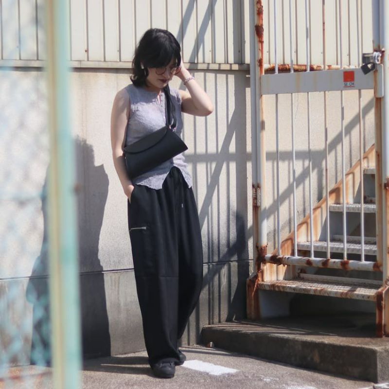 カジュアルなデザインながら、素材の落ち感が生む優雅なシルエットが特徴です。