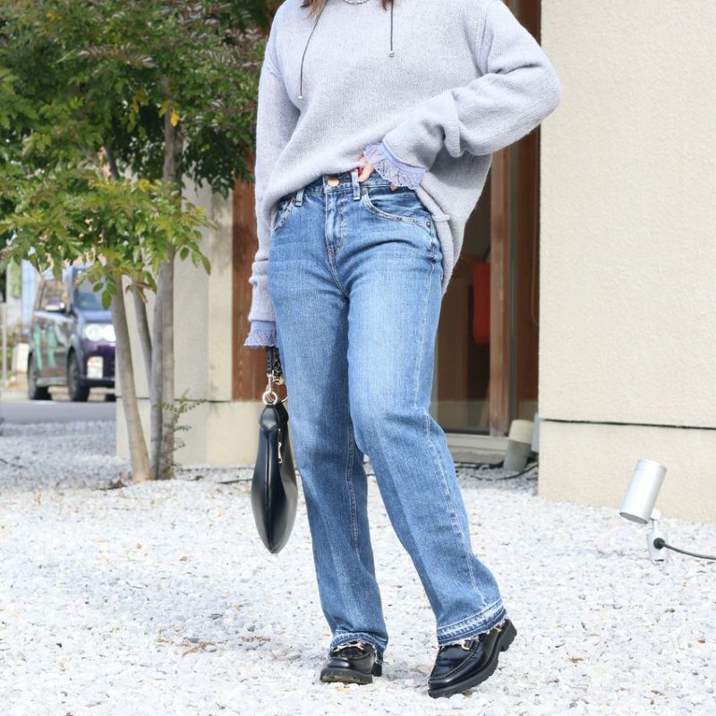 太もも部分は程よくウォッシュ感を強くしており、色のグラデーションを作ることでメリハリができ、より足のラインをシャープに魅せてくれます。