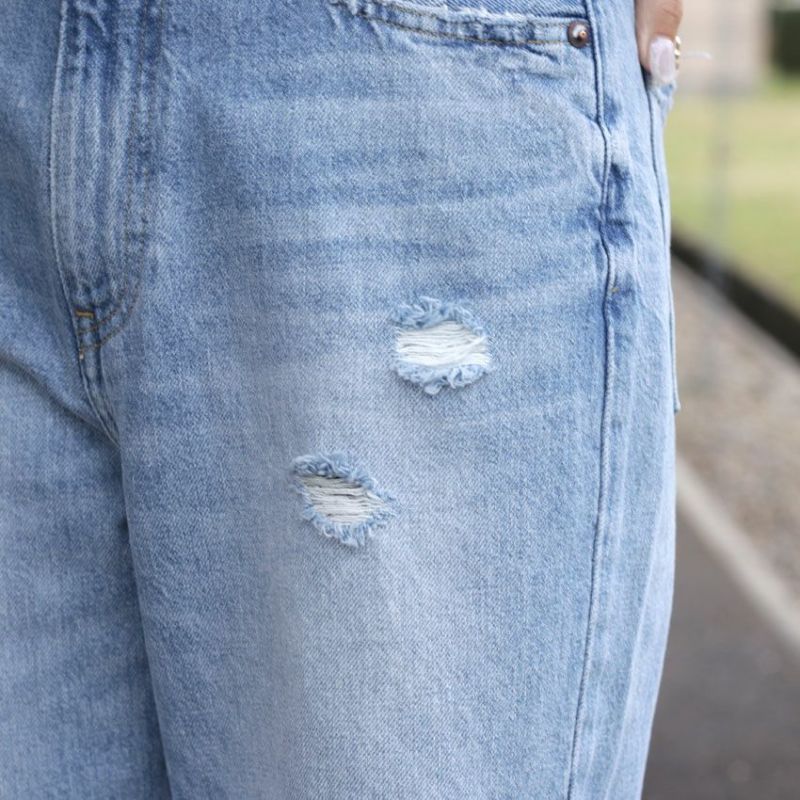 経糸、緯糸双方にリターンコットン(紡績工程で発生する未利用綿を回収して再利用した糸)を採用した、独特のアタリ・シボ感・風合いが特徴の綿100%デニム地使用で、見た目のわりに、軽量で柔らかい素材感。