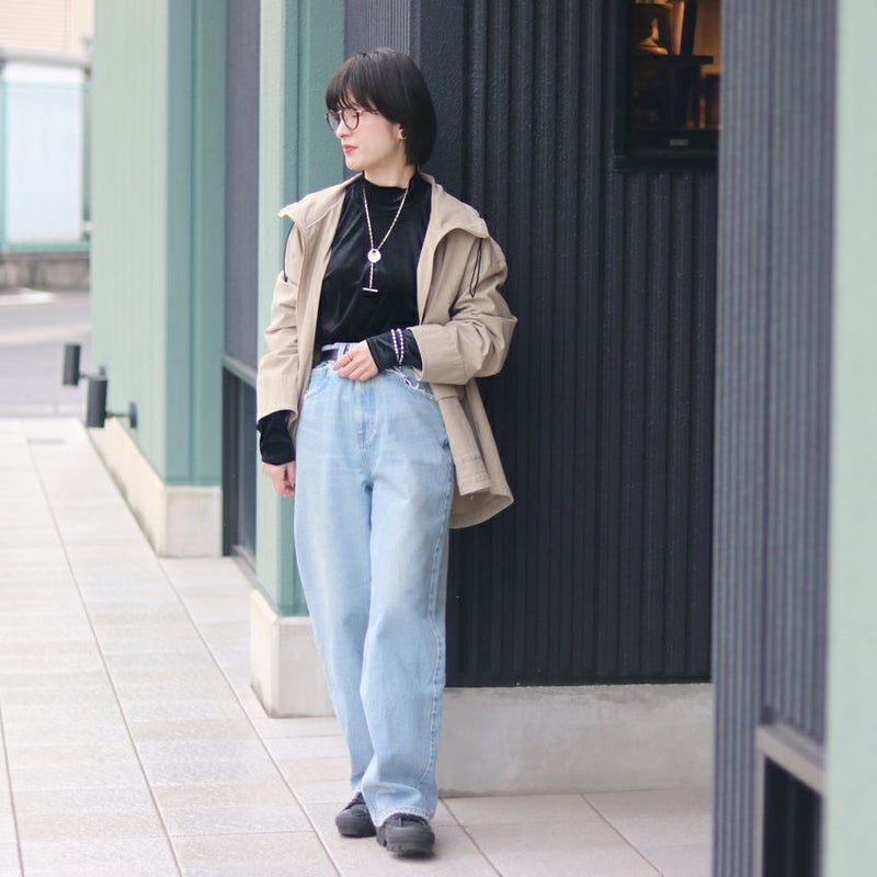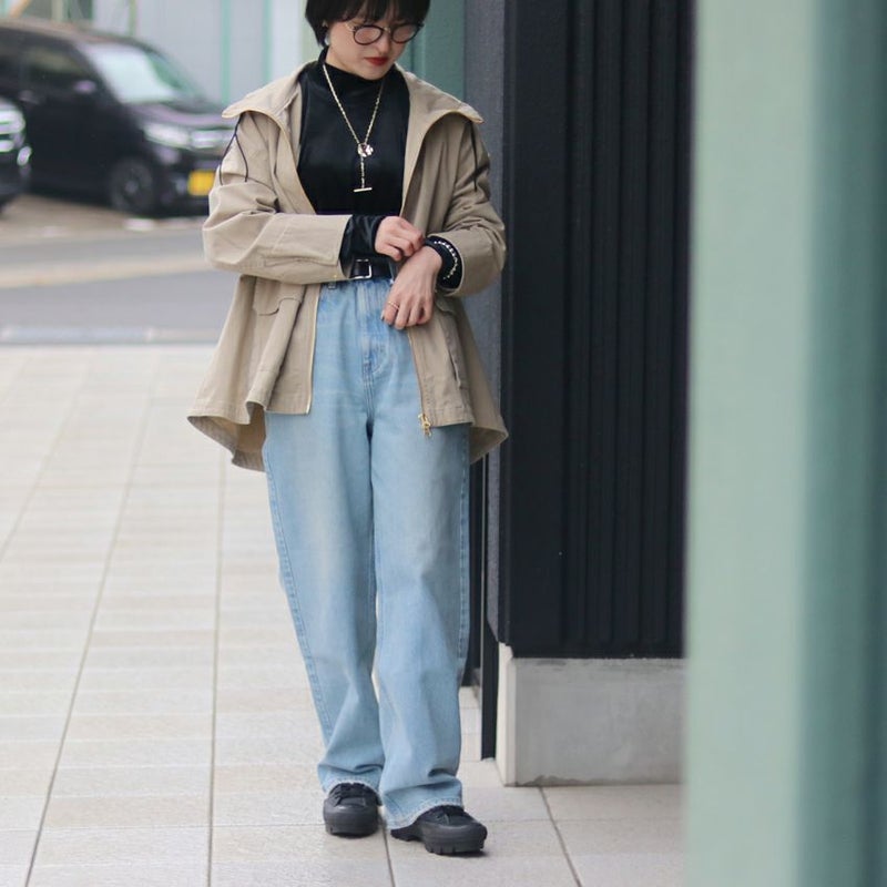 少し長めの丈なので、スニーカーにワンクッションさせたり、ローヒールなどに合わせてトレンド感あるスタイリングにしてみるのもおすすめです。