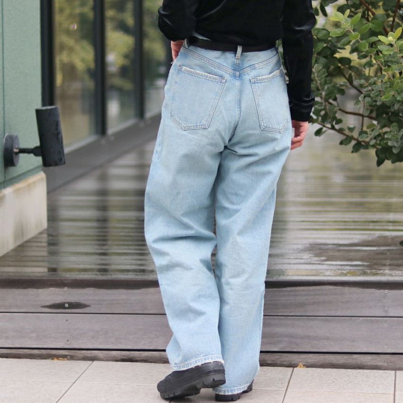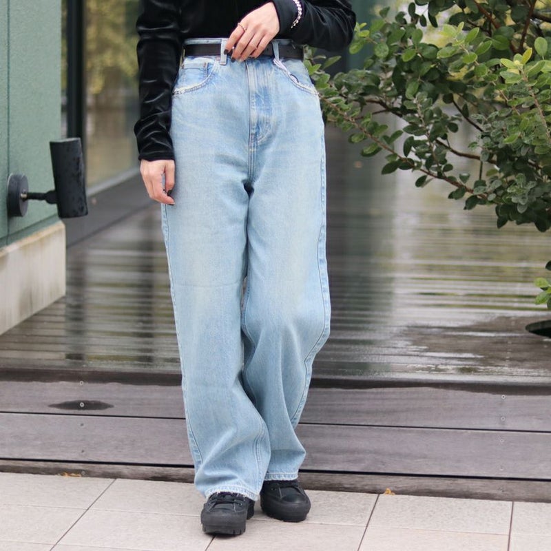 腰を落として履いているようなダボっとした雰囲気は残しつつも、ウエスト周りは自然にフィットする仕様で女性らしさを演出します。