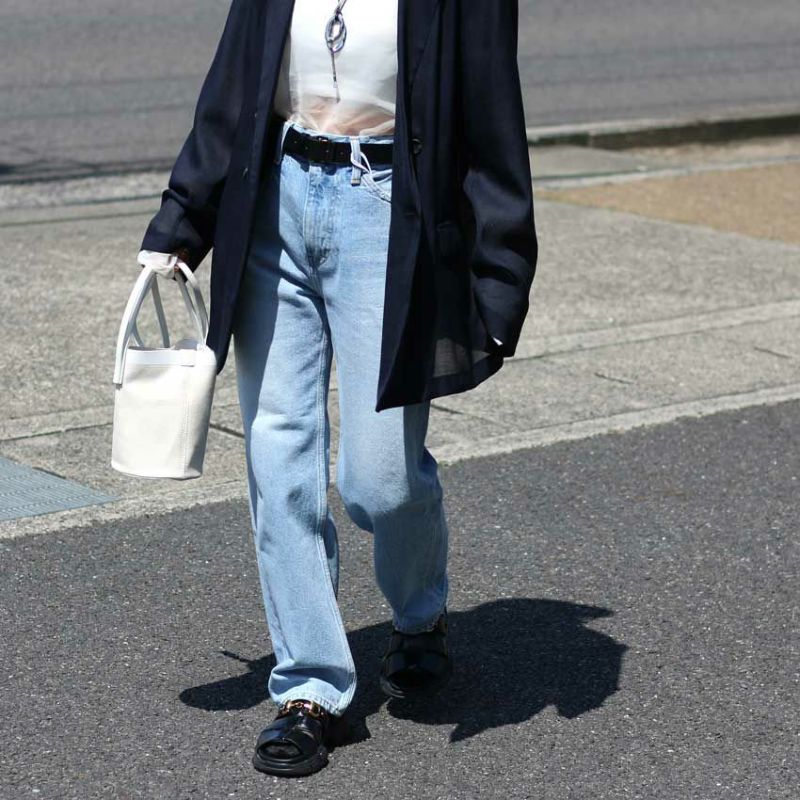 世界初の女性用ジーンズとして開発され、マリリン・モンローも愛用したとされるデニムをオマージュしたモデル。ウエストのくびれを強調するような深い股上とストレートなワイドレッグが特徴です。
