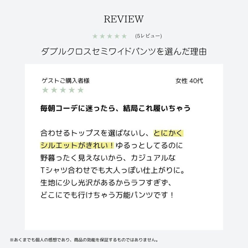 しなやかな落ち感と、上品な艶感を兼ね備えたダブルクロス素材を使用したセミワイドパンツ。