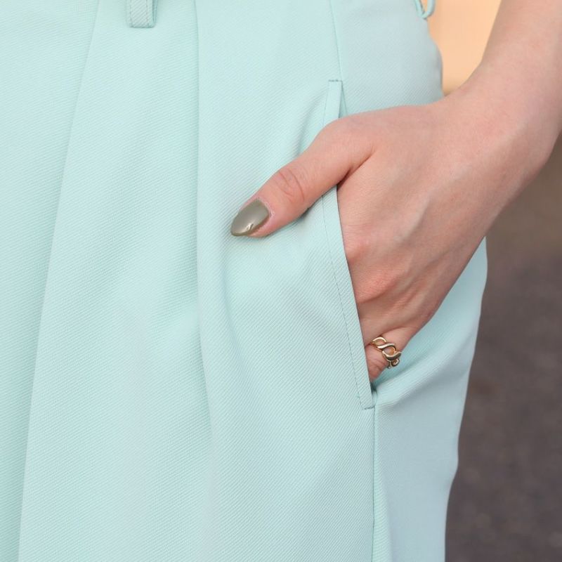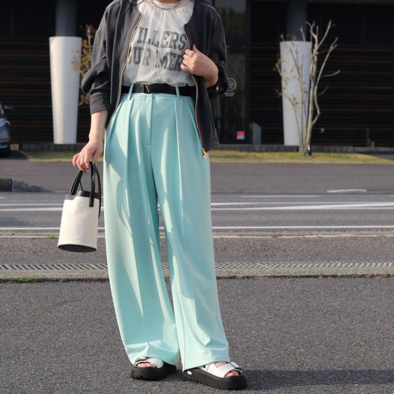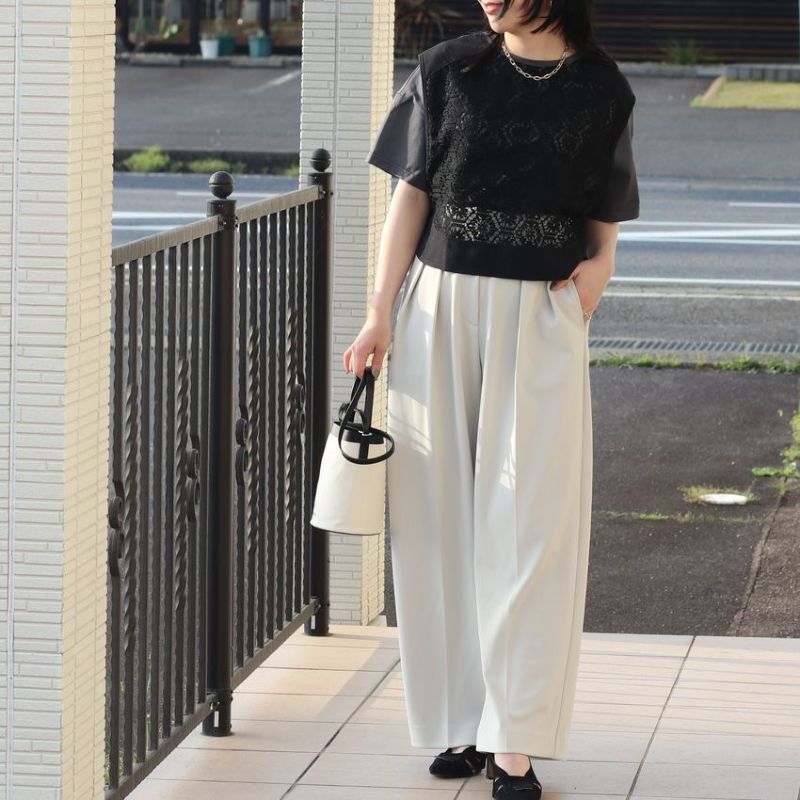 また、セミワイドパンツなので小柄な女性でも綺麗に合わせていただけます。