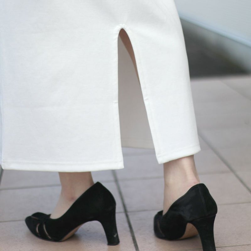 裾には程よくスリットが入っており、女性らしさと動きやすさを兼ね備えています。