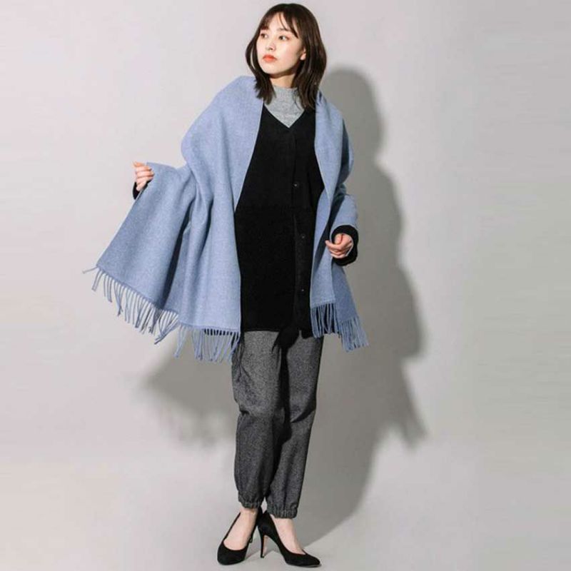 肩から羽織ってストールとしても、首元にゆるりと巻いてマフラー使いにもおすすめです。