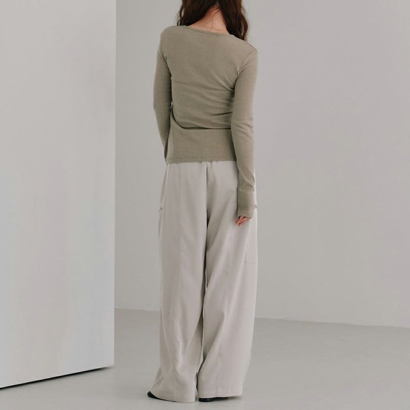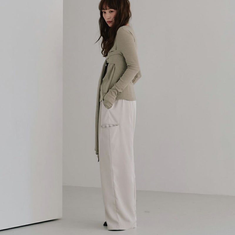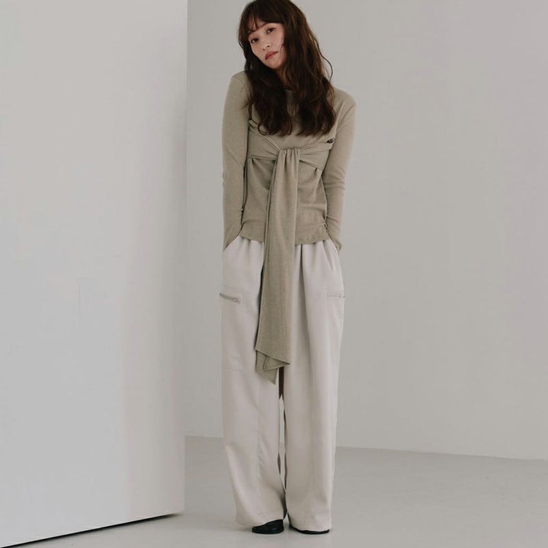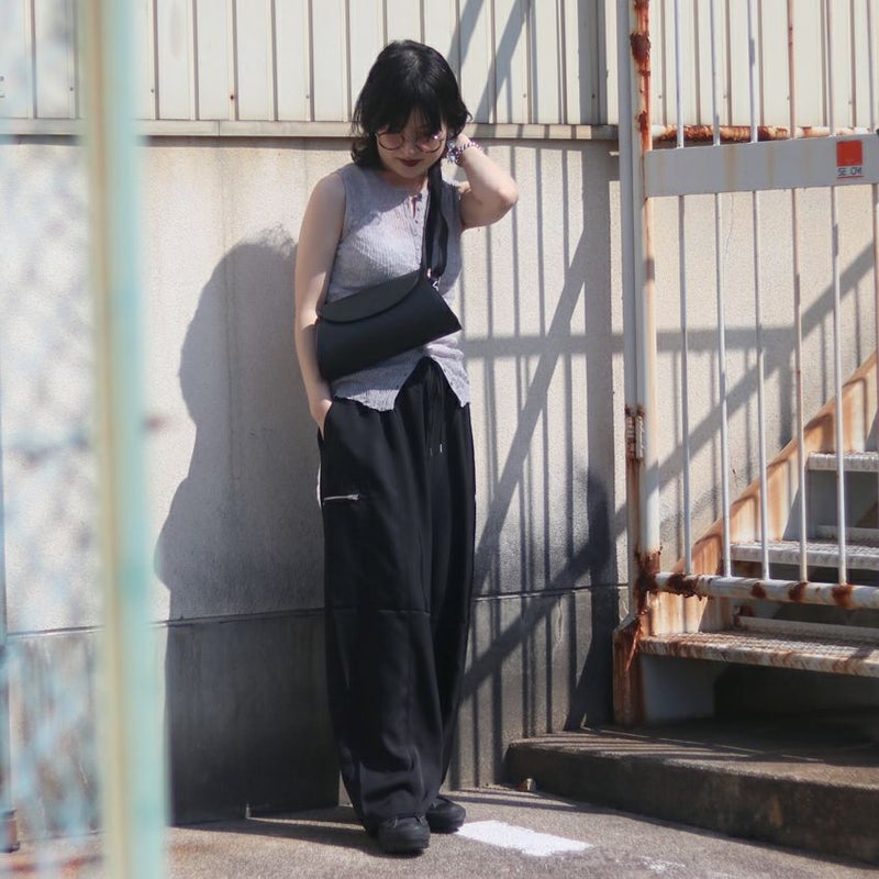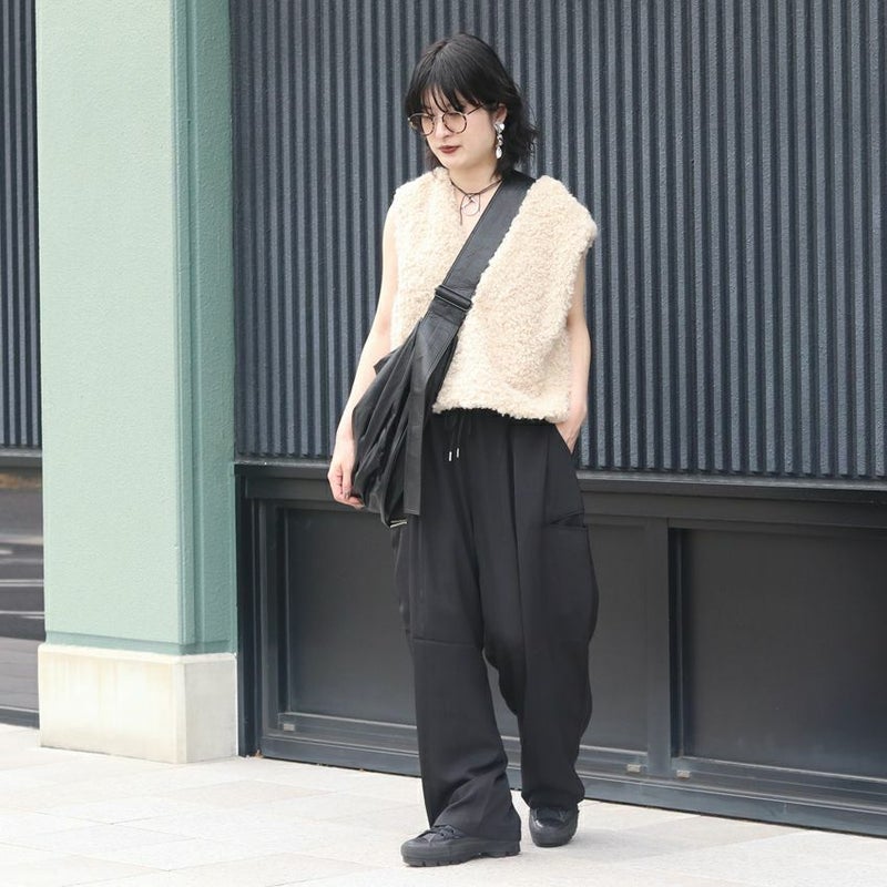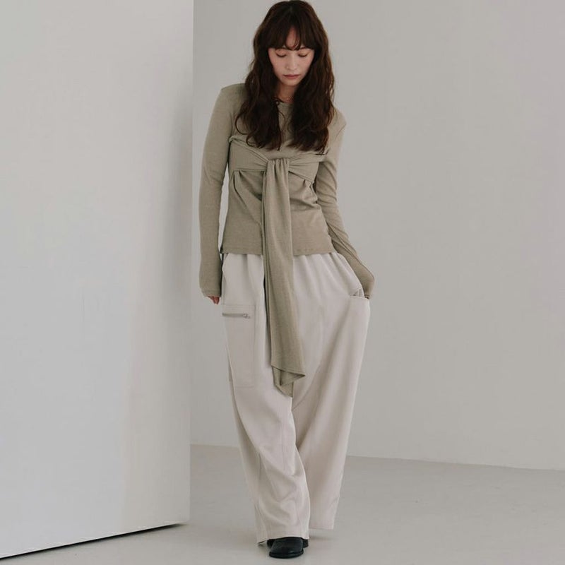 カジュアルなデザインながら、素材の落ち感が生む優雅なシルエットが特徴です。