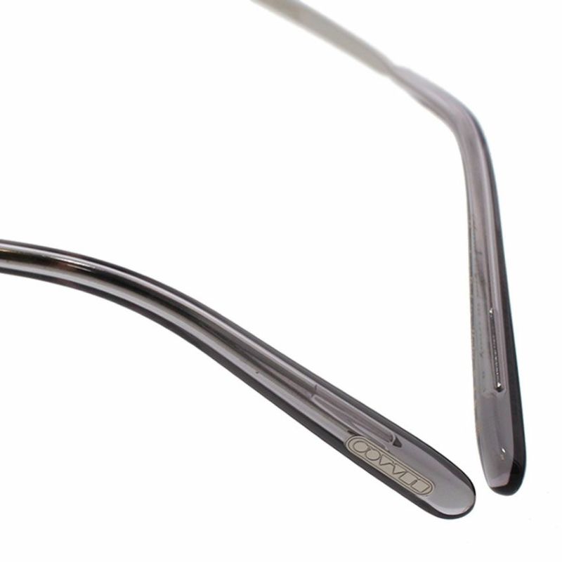 アイスグレーのクリアフレームの眼鏡はどんなコーディネートにも馴染みやすいのがポイント。