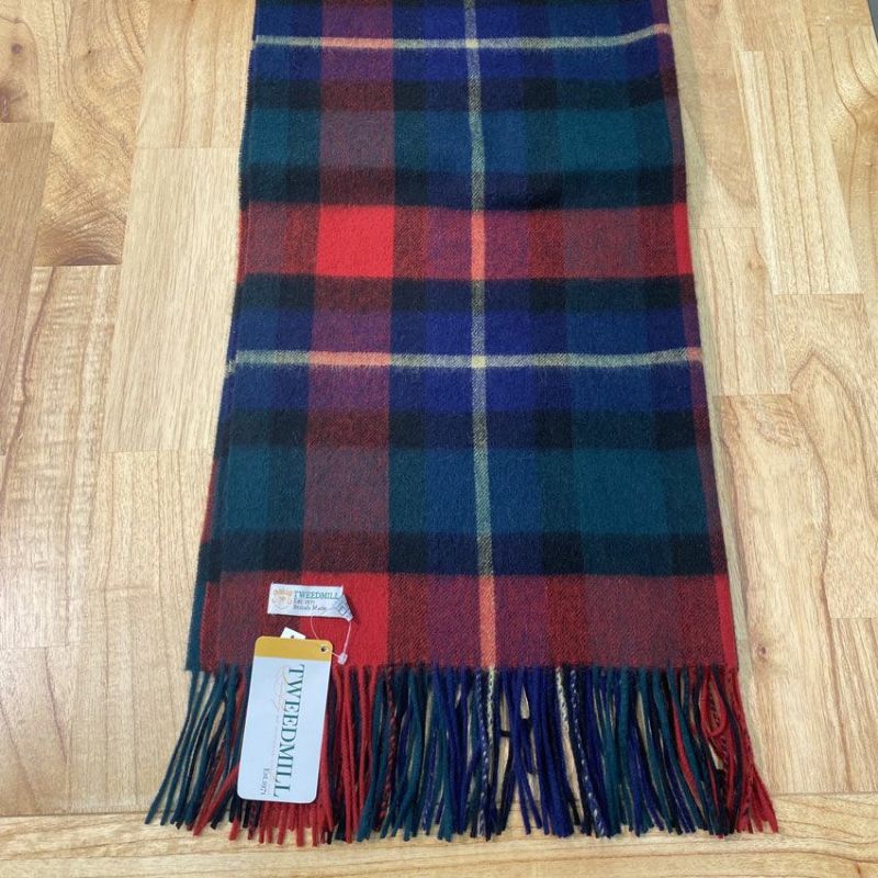 厳選されたピュアラムウールを使用したチェック柄マフラー。