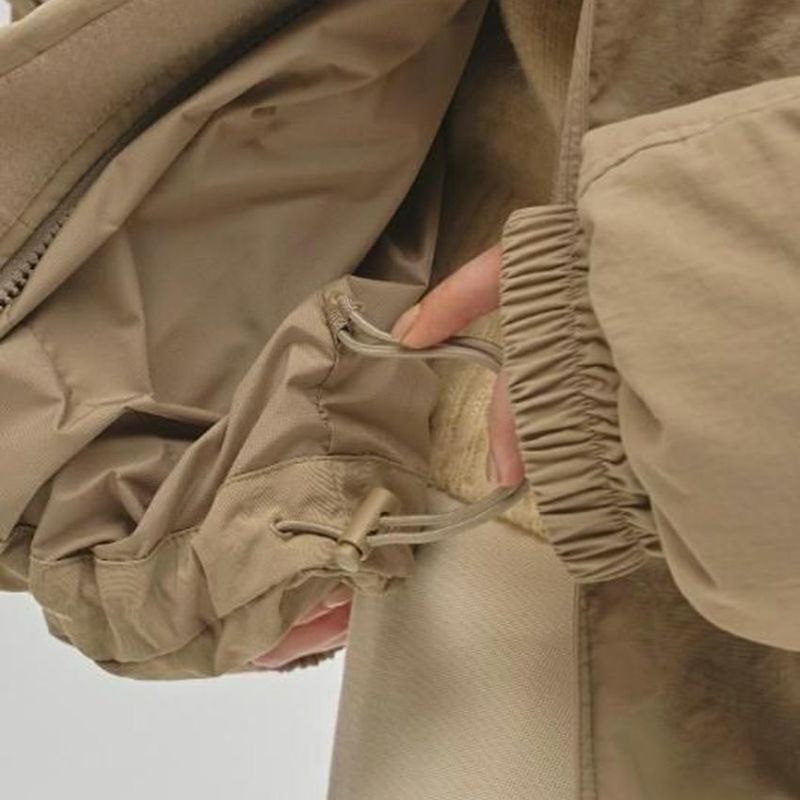 ファスナーの引き手コードやマジックテープなど、細部にまでこだわりが詰まった一枚です。ヒップがすっぽり隠れる着丈で、小柄な方や自転車移動の多い方にも快適にご着用いただけます。