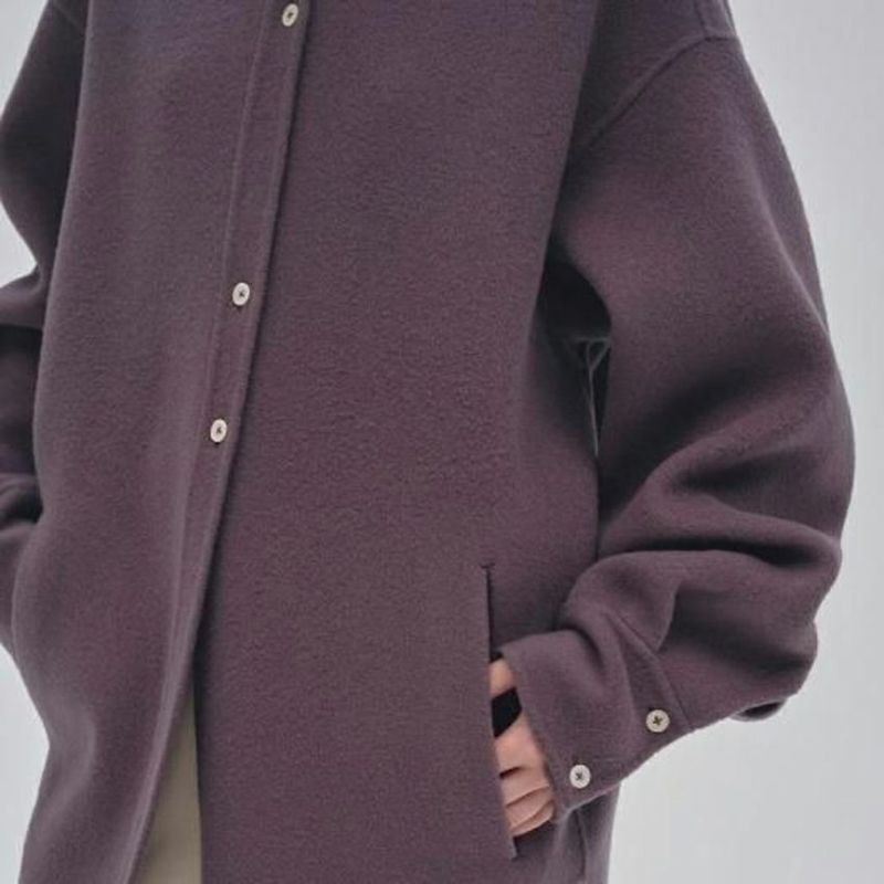 ミニマルなスリットポケットやアシンメトリーなボタン配置が、洗練されたモダンな印象を与えます。