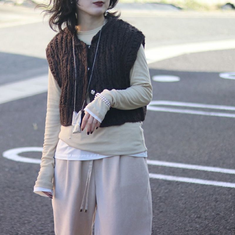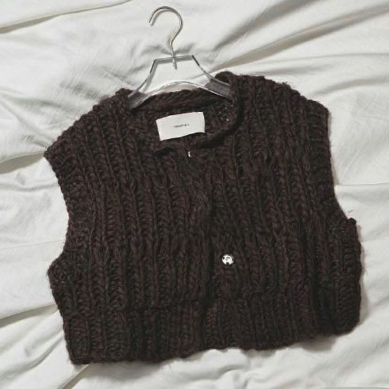 イタリア糸を使用し、一つ一つ丁寧に手編みされたニットベスト。