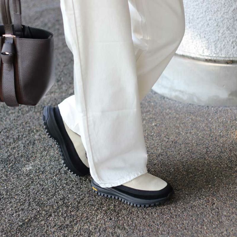 カジュアルな印象のサボも、スエードの高級感とゆったりとしたフォルムにより、どこか品のある“大人顔”な仕上がりに。