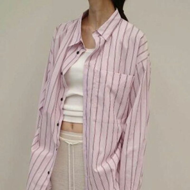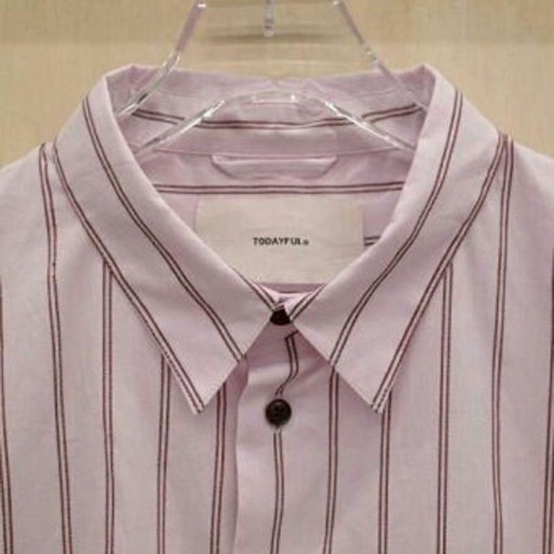 カラーごとに異なるストライプのピッチがアクセントになり、胸元のポケットや配色ボタンがさりげないポイントです。