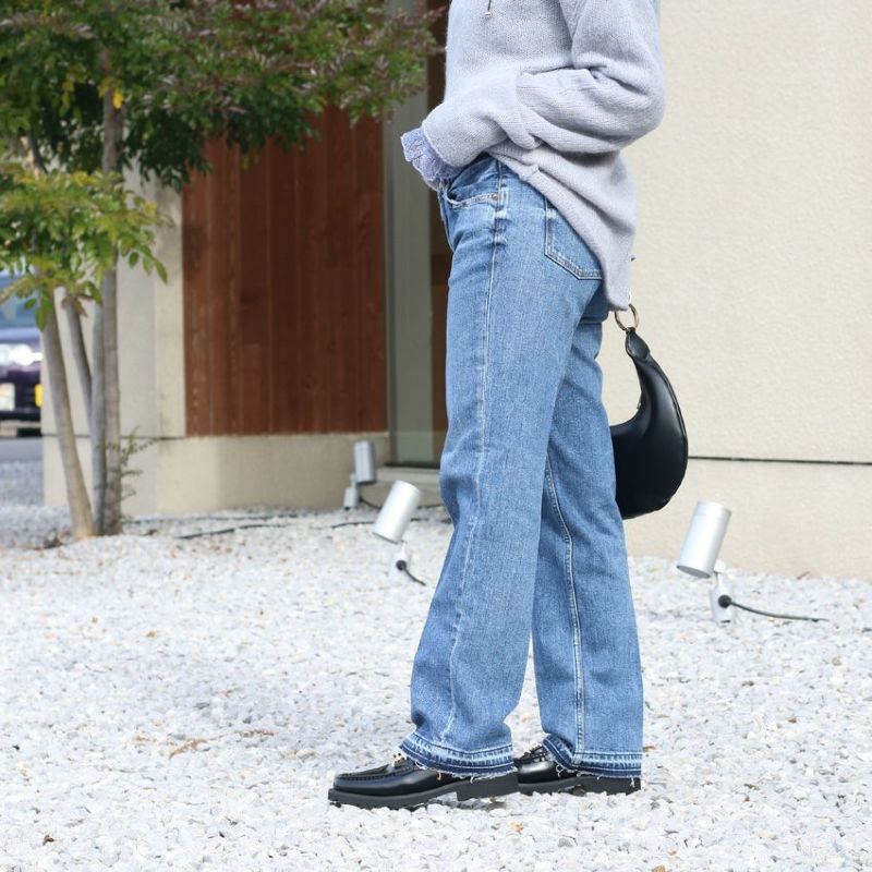 太もも部分は程よくウォッシュ感を強くしており、色のグラデーションを作ることでメリハリができ、より足のラインをシャープに魅せてくれます。