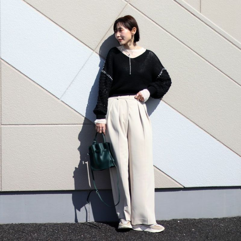 シンプルなボトムを合わせるだけでもこなれ感が出るので、忙しい朝のスタイリングが決まります。