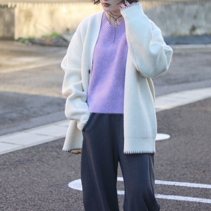 シンプル見えなのに着映える、大人のVネックニット。