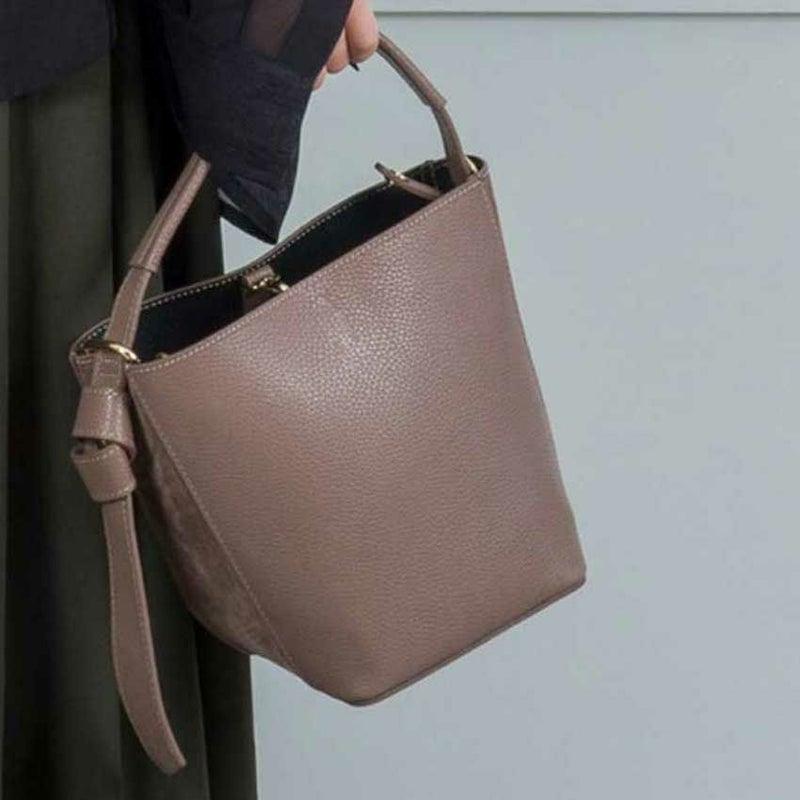 今季人気のバケツ型バッグは持つだけでこなれ感のあるデザインになっています。