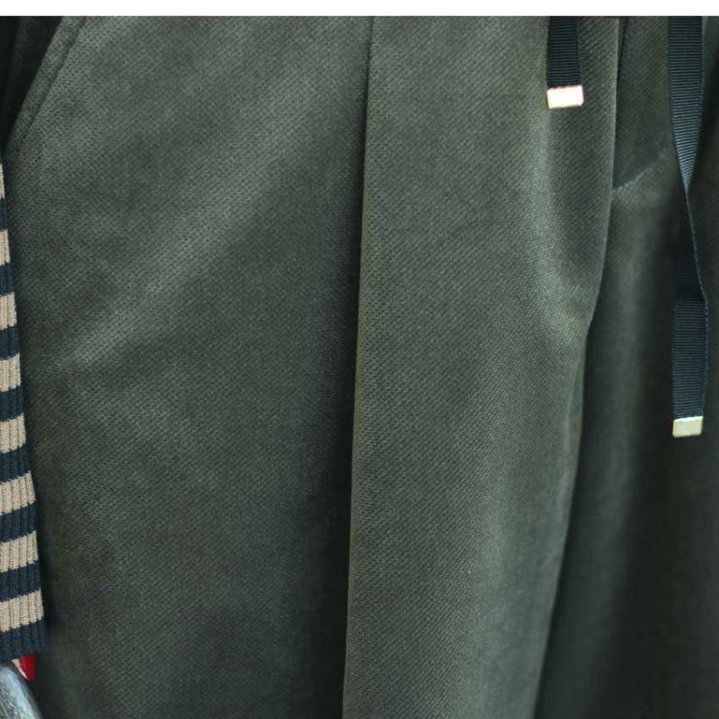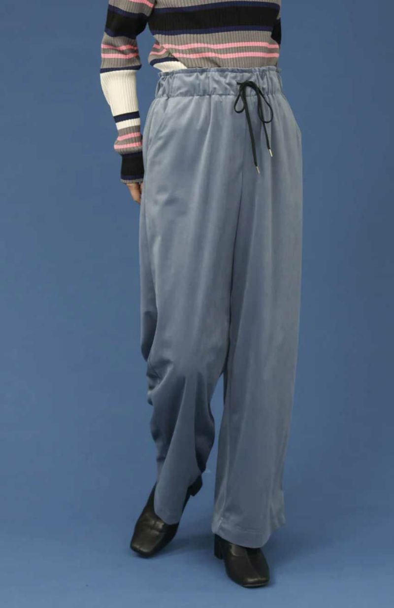 しなやかなドレープと上品な光沢感が魅力のベロアツイル素材を使用したセミワイドパンツ。