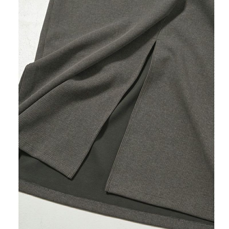 色褪せたような加工感がポイントの、しっかりと目の詰まったリブを使用したストレートワンピースです。