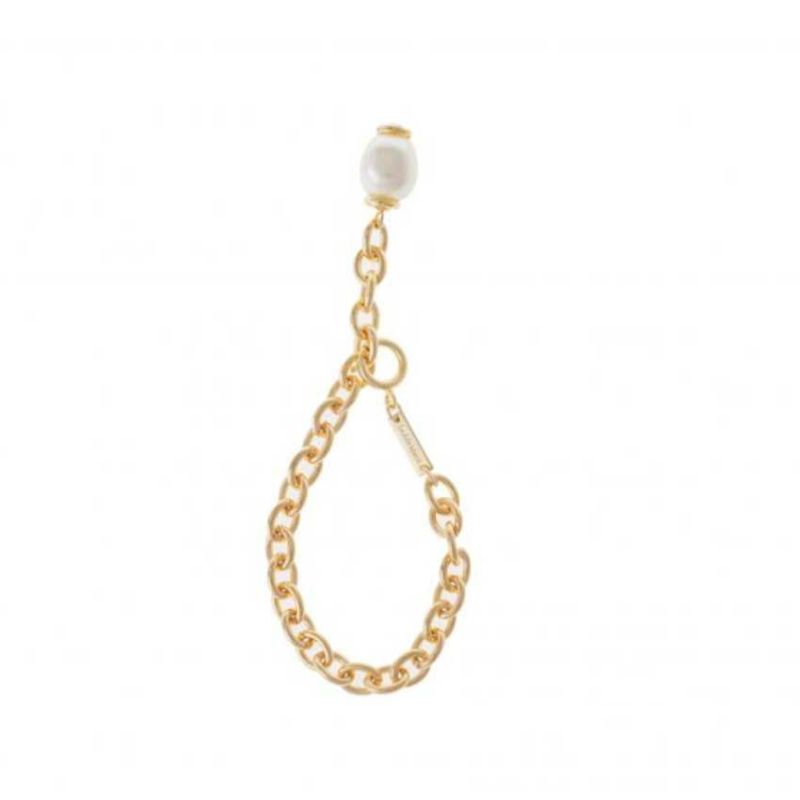 シンプルなチェーンブレスのアクセントに大ぶりパールがアクセントとして先端にあしらわれ一点。