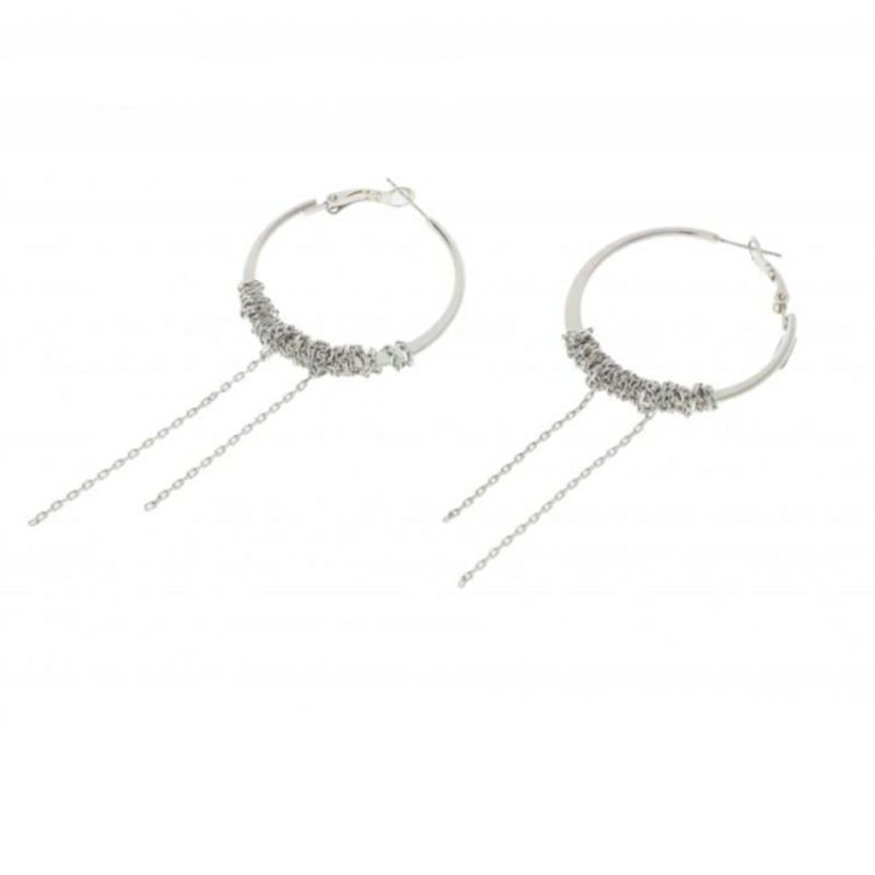 滑らかな円錐モチーフにキレのあるチェーンが巻き付けてあるためデザイン性の高いアイテムになっています。