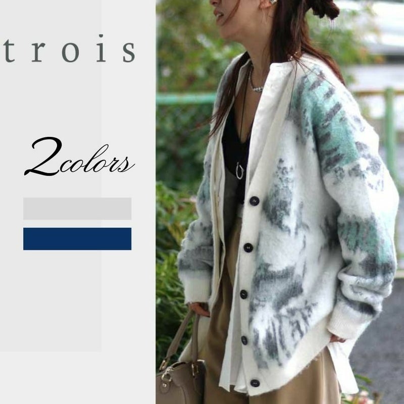trois/トロワ ニュアンス柄シャギーカーディガン T256-88069 カーディガン シャギー ニュアンス柄