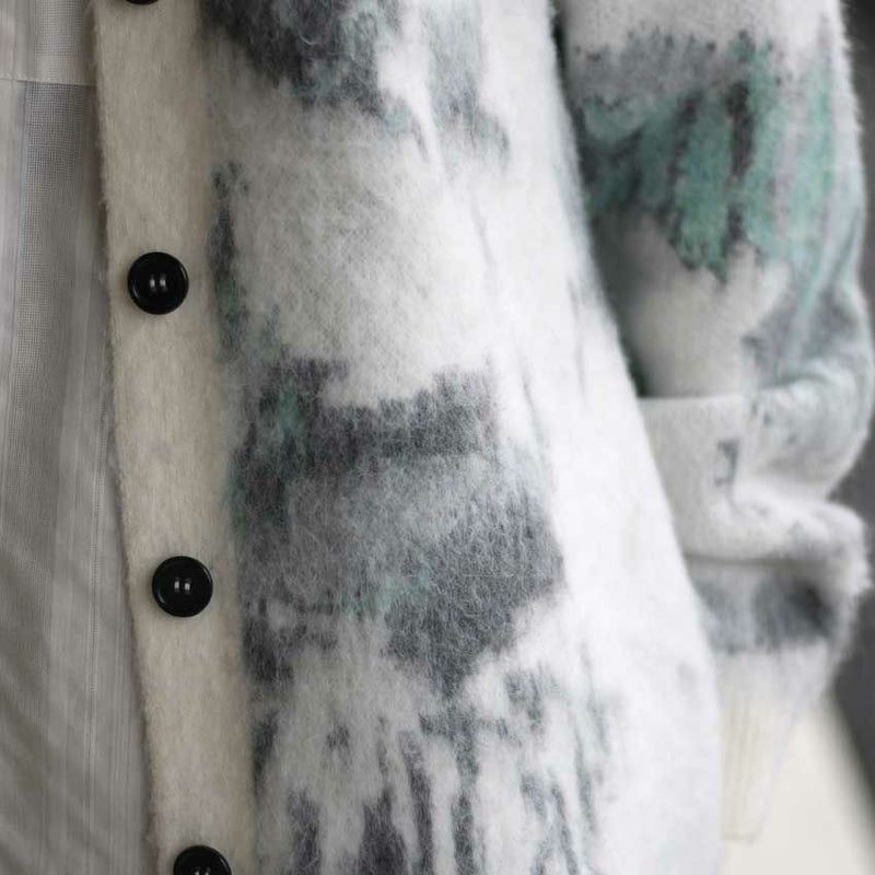ふんわりとした存在感が魅力の、さりげなく映えるニュアンス柄シャギーカーディガンです。
