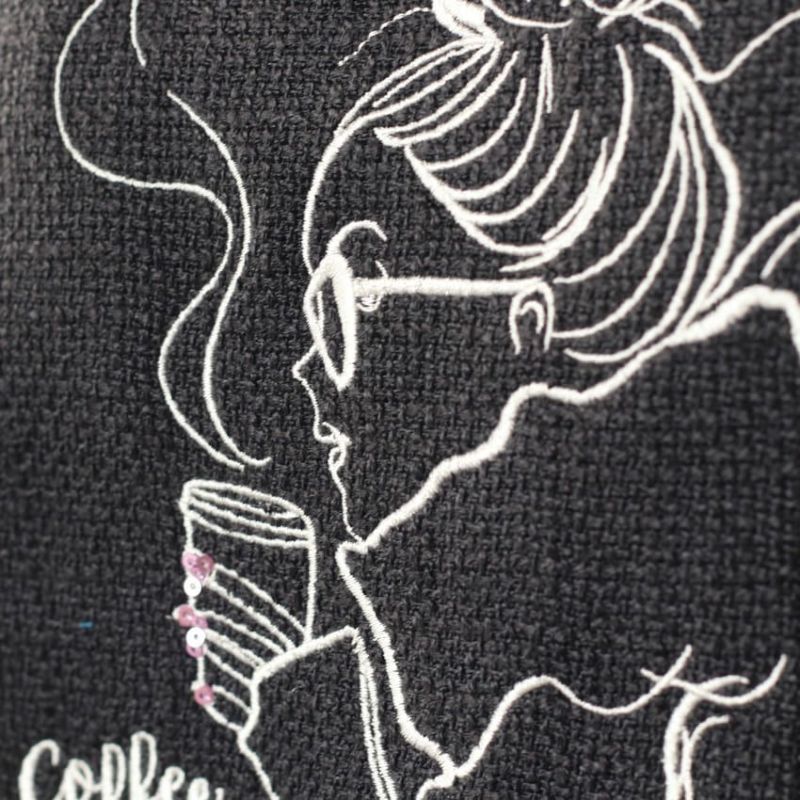女性の横顔を大々的に刺繍でデザインしたパッチワークは他にないユニークさとこなれた雰囲気で着るだけでお洒落に魅せられるような1着となっています。