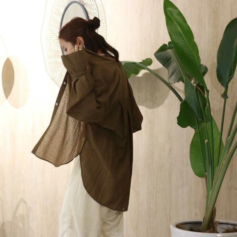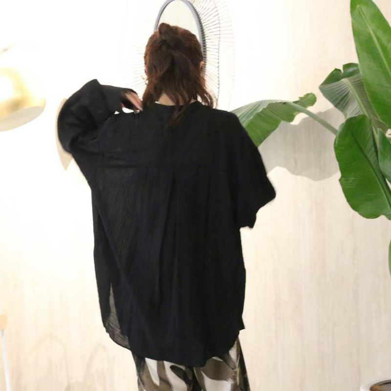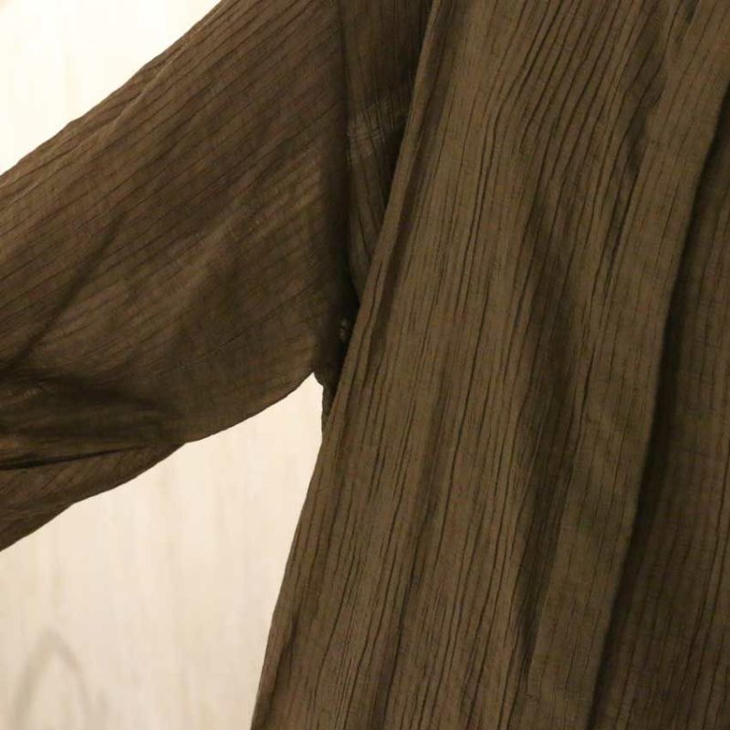 無地のように見える繊細なストライプ柄の楊柳生地を使用した、上品なプレーンシャツ。