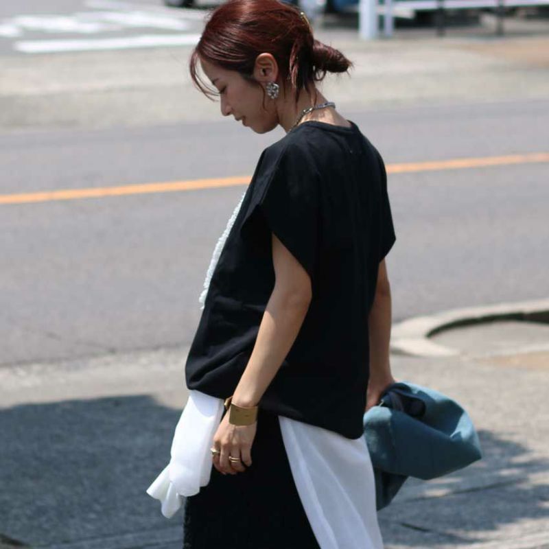 さらに、裾のタックが自然な立体感を生み出し、インせずともこなれた着こなしが叶います。