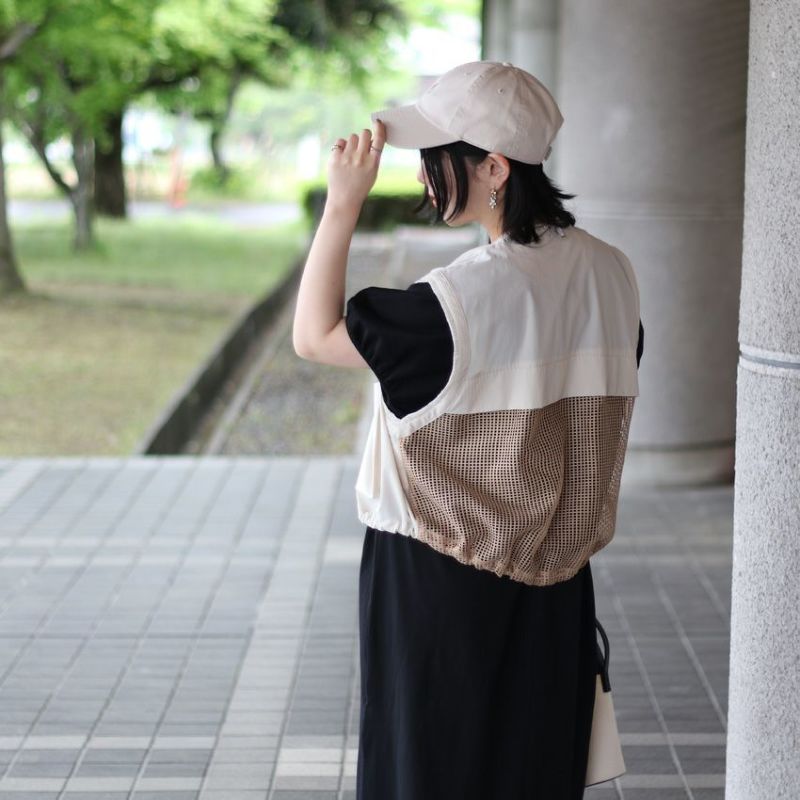 ミニマルなサイズ感に、前後でデザインに変化をつけたナイロンべスト。
